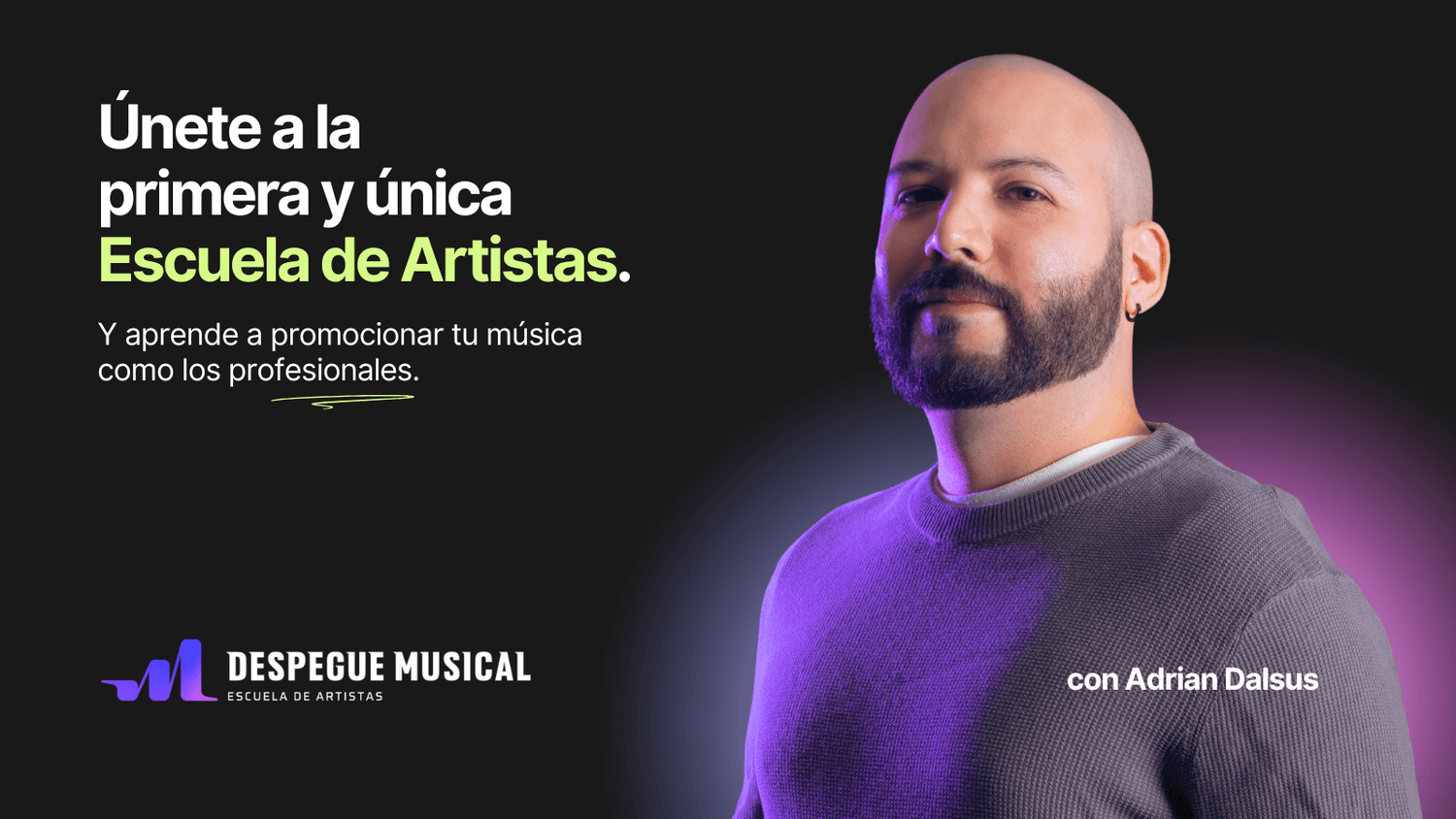 La primera y única escuela de artistas hispanohablantes, creada para enseñarte a promocionar tu música como un profesional, sin depender de terceros.